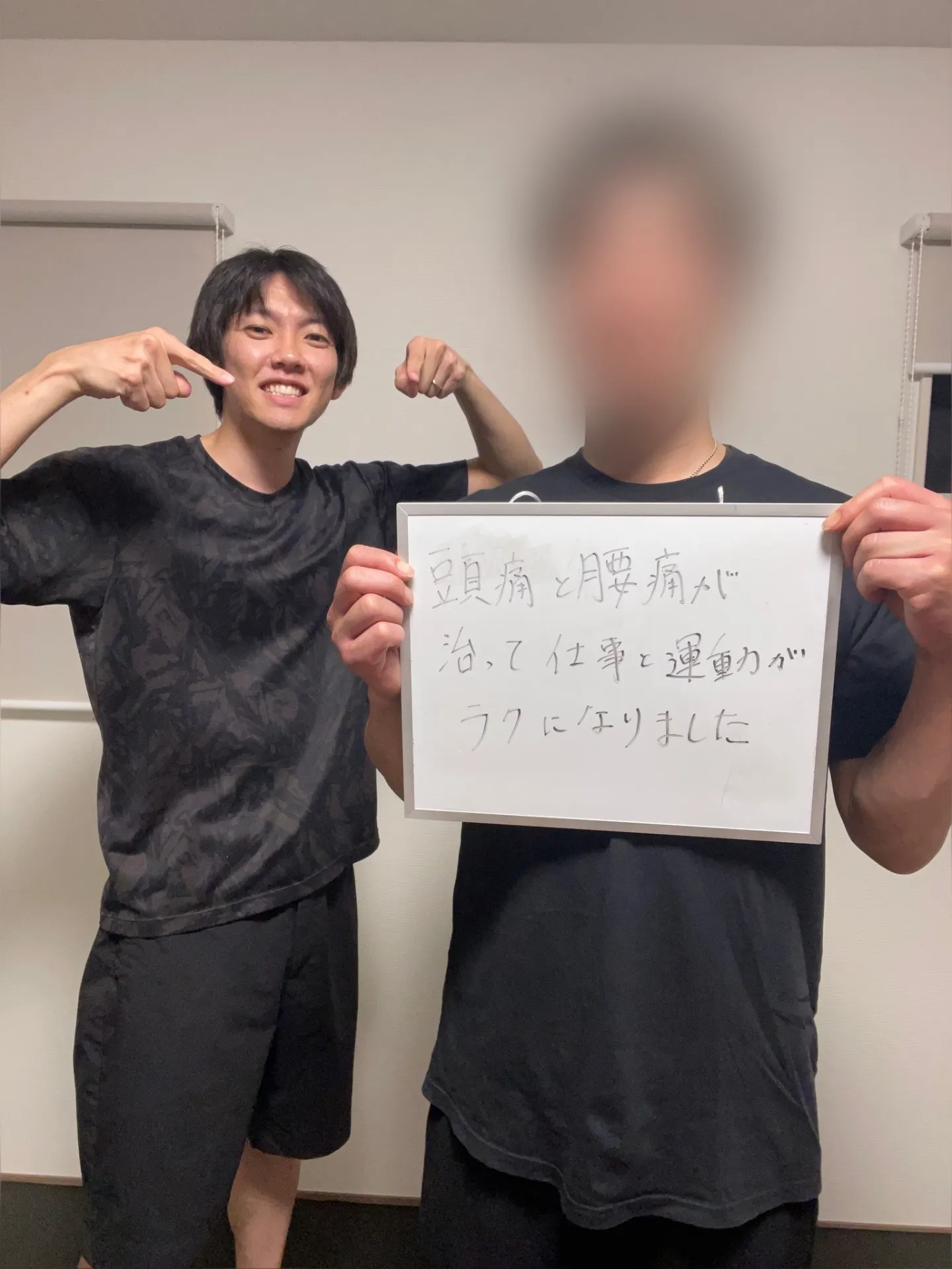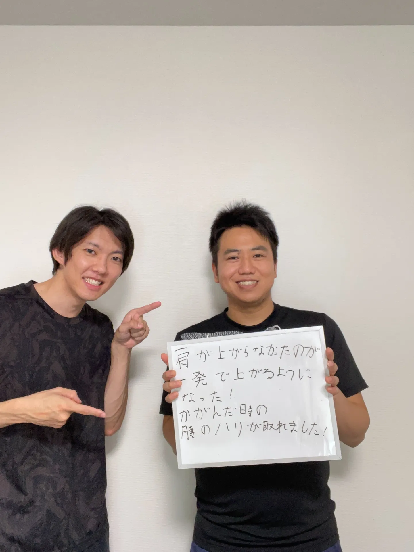 右肩が上がらず悩んでいたそうです。20分で解決しました。